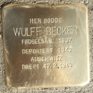 | Wulff Becker (1905-1943)Torggata 17 B, OsloWulff Becker was born on September 19, 1907 in Oslo as one of eight children of Mina (b. Hirschhorn, 1869 in Latvia) and merchant Mendel Davidor Becker (b. 1862 in Latzko-wa, Lithuania). Mina and Mendel had come to Norway in 1896.Wulff got his General Certificate of Education [ passed his A-levels] in 1926 and the medical official exam in 1933. From 1935 he ran his own practice in Torvgata 17 in Oslo.In January 1940, Wulff married Plata Reinertsen (b. 1900 in Lyngdal), but the marriage was short-lived. Plata Becker died of disease in June of the same year.Wulff Becker was arrested in July 1941, and sent between Møllergata 19, Grini and Kvænangen before being deported with Monte Rosa on November 26, 1942. He was transferred to the Golleschau satellite camp after arriving at Auschwitz. After a while, he was appointed as a doctor to lead a typhus ward. He contracted typhus himself and died on February 17, 1943. His parents and three siblings were also deported and killed. |